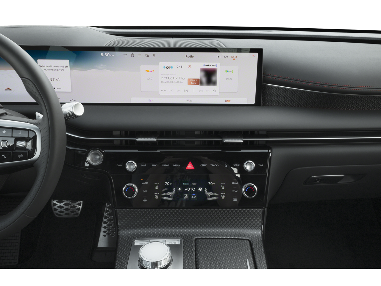 - Radio: AM/FM/HD Bang & Olufsen Prem Audio System -inc: hi-resolution audio, 18 speakers, 14 channel amplifier w/1,400 watts max power, 27" high-definition OLED display and navigation system, SiriusXM Radio w/90-day trial subscription (not available in AK or HI), wireless Apple CarPlay and Android Auto, Genesis Connected Services, Bluetooth® hands-free phone and audio streaming system, Wi-Fi hotspot and USB connectivity