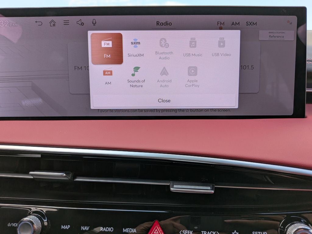 - Radio: 14.5" Navigation System w/AM/FM/HD Radio -inc: SiriusXM radio w/90-day trial subscription (N/A in AK or HI), wireless Android Auto and Apple CarPlay, Genesis Connected Services, Bluetooth® hands-free phone & audio streaming system, Bang & Olufsen sound system w/16 speakers, WiFi hotspot, internal amplifier and USB port