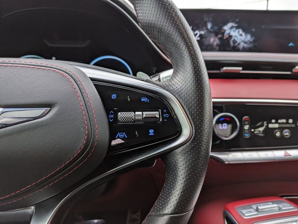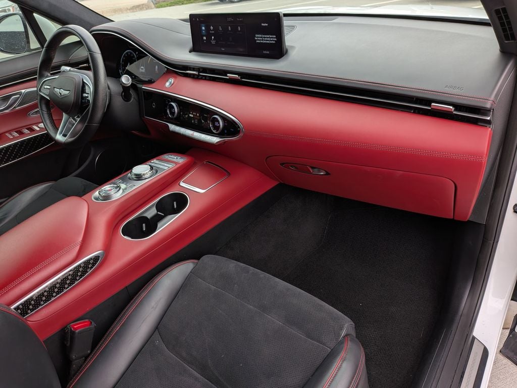 The Sport Prestige Package elevates this GV70 to new heights, offering a wealth of premium features that cater to your every need. Indulge in the luxurious Nappa leather seating with sport quilting, the Heads-Up Display, and the Surround View Monitor that provides unparalleled visibility. The 21-inch Sport Dark Sputtering Alloy wheels and the Electronic Limited-Slip Differential add a dynamic touch, ensuring exceptional handling and control.