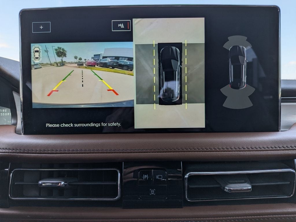 Indulge in the premium leather-trimmed heated and ventilated captain's seats, which provide unparalleled comfort on any journey. The Revel audio system with 13 speakers and HD radio will elevate your listening experience, while the hands-free liftgate and phone-as-a-key feature add convenience to your daily routine.