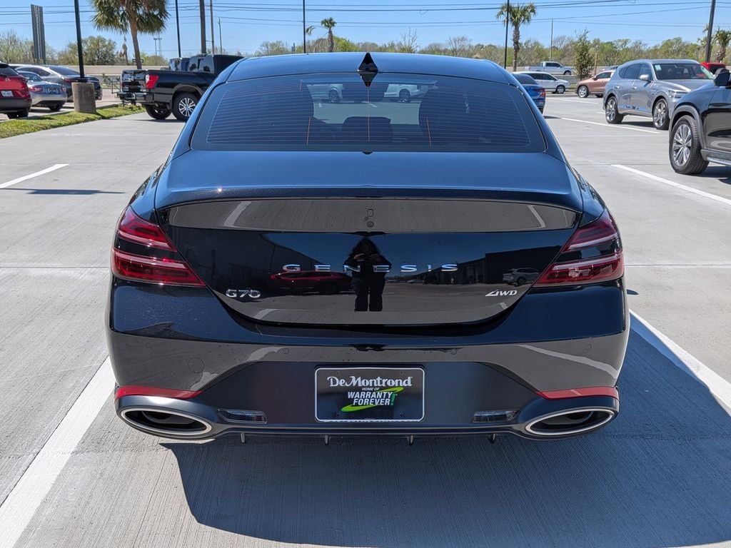 Under the hood, the potent 2.5-liter turbocharged I4 engine and 8-speed automatic transmission with all-wheel drive deliver an exhilarating driving dynamic, with impressive fuel efficiency of 20 city/28 highway MPG. This Genesis G70 is not only a joy to pilot, but also a testament to the brand's commitment to sustainability and environmental responsibility.