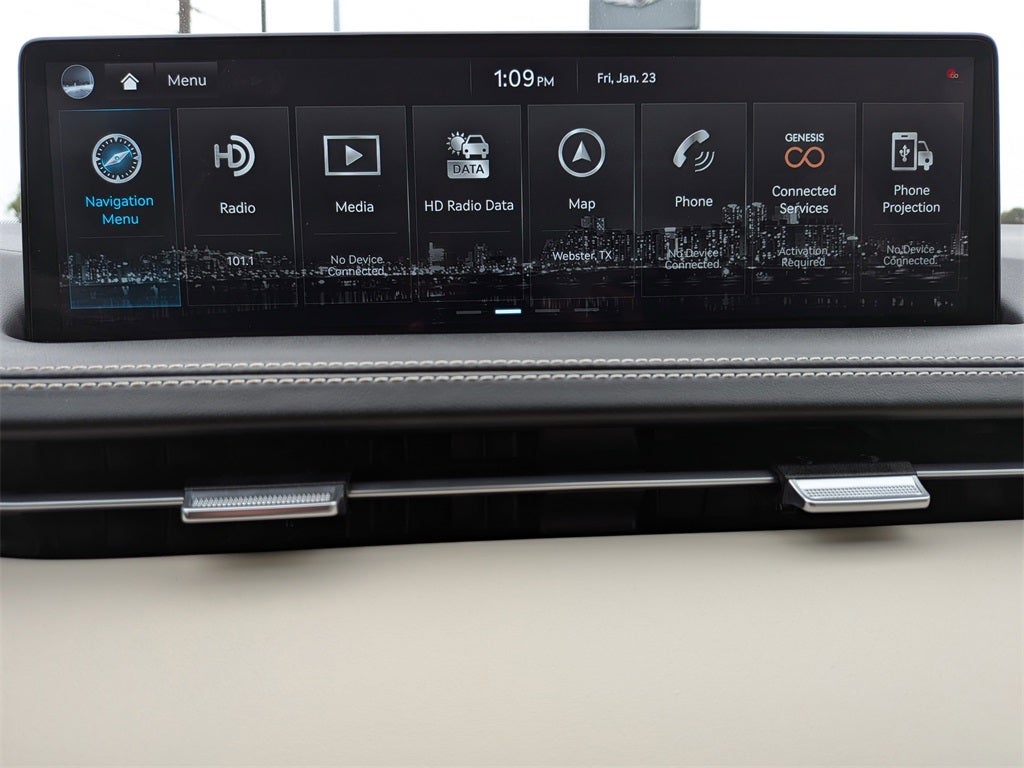 - Radio: 14.5" Navigation System w/AM/FM/HD Radio -inc: SiriusXM radio w/90-day trial subscription (N/A in AK or HI), Android Auto and Apple CarPlay, Genesis Connected Services, Bluetooth® hands-free phone & audio streaming system, premium audio w/9 speakers, WiFi hotspot, internal amplifier and USB port